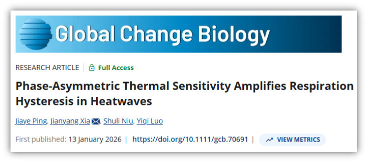 近日,国际生态与环境领域顶尖期刊Global Change Biology发表了华东师范大学生态与环境科学学院夏建阳团队题为“Phase‐Asymmetric Thermal Sensitivity Amplifies Respiration Hysteresis in Heatwaves”的研究成果。该研究融合通量观测记录与全球陆面模式模拟,揭示热浪通过改变生态系统呼吸作用对温度响应的阶段性敏感性,从而显著放大其“热时滞效应”。这一发现为理解极端气候事件下陆地碳循环的非对称响应及其长期碳损失风险,提供了新的分析框架与实证依据。
