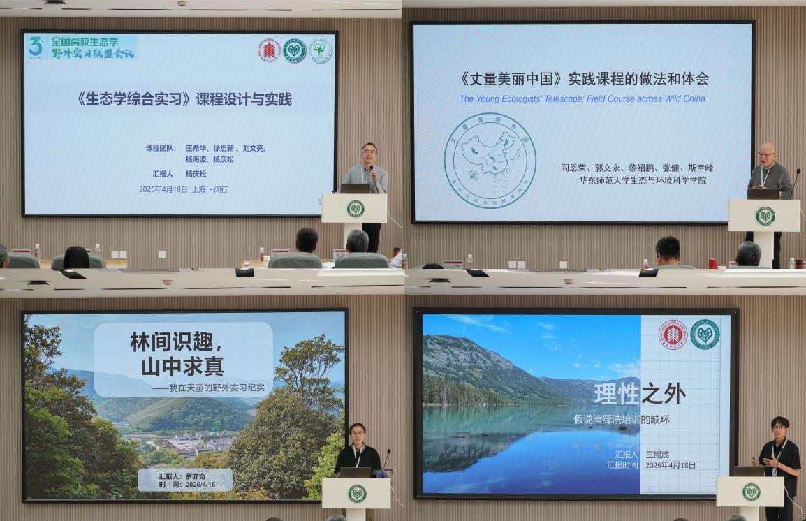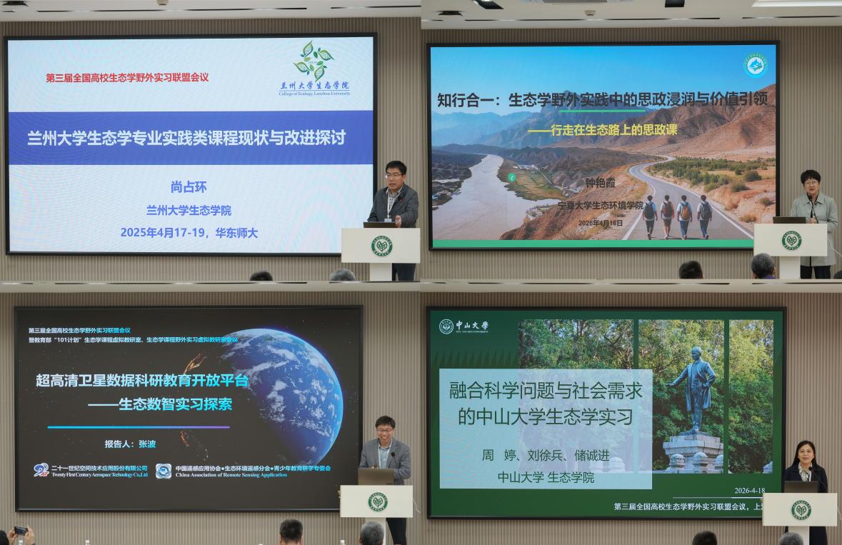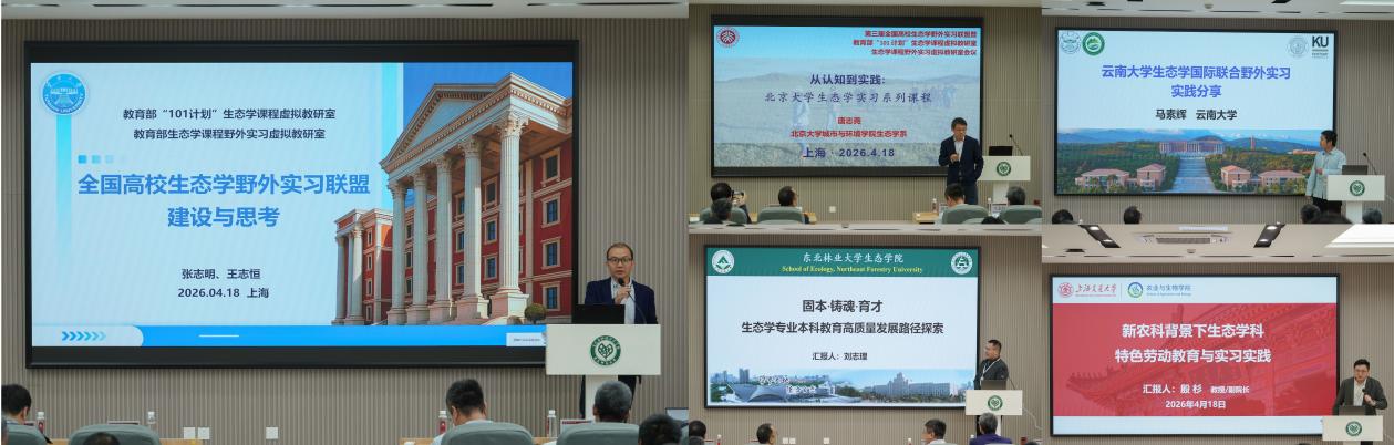 为深化全国高校生态学野外实习联盟成员单位间的合作交流,夯实生态学本科野外实习课程建设基础,全面提升生态学课程教学与实践质量,2026年4月17—19日,第三届全国高校生态学野外实习联盟会议在上海顺利召开。本次会议由全国高校生态学野外实习联盟、教育部“101计划”生态学课程虚拟教研室、教育部生态学课程野外实习虚拟教研室、教育部生物学课程野外实习虚拟教研室、教育部生命学科人才培养模式改革虚拟教研室等联合主办,华东师范大学生态与环境科学学院承办。来自北京大学、复旦大学、兰州大学、内蒙古大学、厦门大学、云南大学、中山大学等全国35所高校及单位的80余位生态学领域专家学者齐聚申城,围绕生态学野外实习教学改革、资源建设与合作交流等核心议题深入研讨,共话实践育人创新路径,共促生态学教育高质量发展。